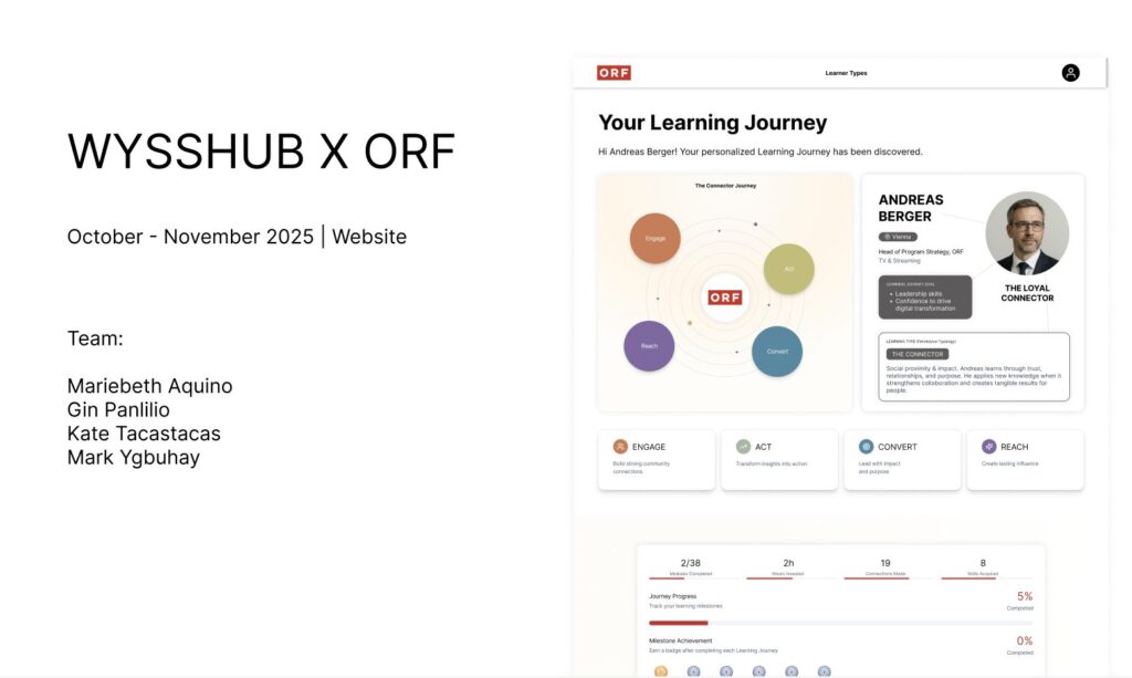Led the UX design for a new EdTech concept developed for ORF x WyssHub, an Austrian broadcasting network. The project aimed to explore innovative ways to deliver engaging, learner-centered digital education experiences for company employees.
